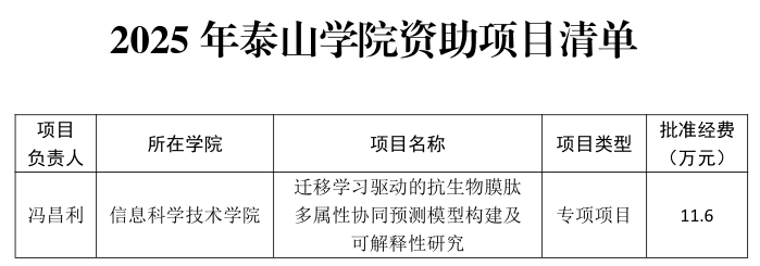 近日,国家自然科学基金委员会公布了2025年专项项目评审结果。学校信息科学技术学院冯昌利副教授申报的“迁移学习驱动的抗生物膜肽多属性协同预测模型构建及可解释性研究”项目成功获批,资助经费11.6万元。